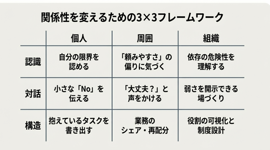 その結果として、無理をする人が支え続け、周囲はそれに気づきにくい――